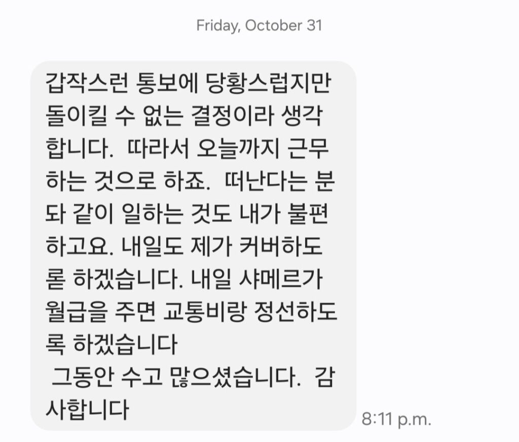 그동안 배려한다고 여러가지 생각하고 고민하고 말을 했더니 저렇게 답이 왔다.